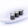 Bocconcini di riso avvolti da salmone, tartare sake, tabasco