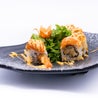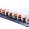 Salmone scottato, philadephia, pasta kataifi e salsa teriyaki