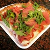 Pomodoro, mozzarella, lardo PataNegra, salsiccia, salmone, cipolle, mieleDamiano