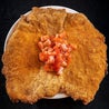 Di lonza ad orecchia di elefante, larga, piatta e croccante con tocchetti di pomodoro
