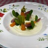 (Crema di cavolfiore con verdurine baby, zucchine, rapanello, scalogno agrodolce e
