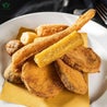 (agnello in panure fritto con patate al forno)