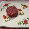 (battuta di Fassona Piemontese “ macelleria Cazzamali “, topinambur, maionese di limone, rosmarino e polvere di midollo)