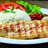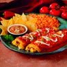 Rotolini di pollo coperto con salsa messicana e formaggio con contorno di riso e fagioli
