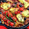 Petto di pollo con olive, capperi, pomodorini freschi, coriandolo, una spruzzata di lime, accompagnato da tortillas