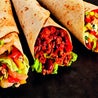 Tortilla di farina farcita con chili con carne, verdure saltate, pancetta rosolata, mais e riso