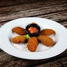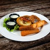 Antipasto misto composto da onion ring, potato skin, cheese stick, chili popper, N.Y. tube, serviti con salsa Monterrey e salsa blue cheese