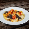 Carote, zucchine, porri, cipolle, sedano, pomodori, peperoni, mais, olive il tutto grigliato con salsa bbq, servito su piastra rovente, con contorno di salsa bbq, salsa di mais