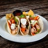 Tre tortillas di grano farcite con zucchine, carote, sedano, porri, avocado, insalata, guacamole, pico de gallo maionese vegana servite con chips di mais