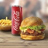 Fried Chicken Burger con Coca-Cola o Coca-Cola Zero, servito con patatine fritte
