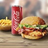 Bacon Swiss Classic con Coca-Cola o Coca-Cola Zero, servito con patatine fritte