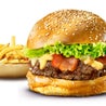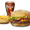 Maxxxi burger, guarnito con semi di sesamo, con Coca-Cola o Coca-Cola Zero, servito con patatine fritte