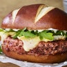 Pretzel bread con doppio burger di maiale! E come peccato di gola aggiungiamo anche onion rings e salsa bacon