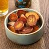 Pane artigianale alle cipolle, burger di culatello marinato in salsa bbq con peperoni verdi, la nostra capricciosa, coppa affumicata, mozzarella di bufala affumicata