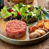 Pane senza glutine, stracciatella di latte, 250gr di tartare battuta al coltello con capperi e cipolle di Tropea, bruschetta con pomodorini collina conditi con olio evo Guglielmi, basilico e acciughe del Cantabrico, rucola