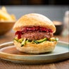 Pane artigianale al latte, zucchine alla griglia, burger Beyond Meat - vegetariano, taleggio fuso, insalata di radicchio, cipolle di tropea, noci e aceto di mele