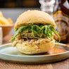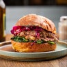 Pane artigianale tipo bretzel, spalla di maiale sfilacciata condita con la nostra salsa barbecue, mystic salad leggermente piccante