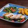 Panino con petto di pollo e formaggio fuso, servito con patate french fries e salsa Old Wild West