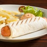 Wurstel di suino senza pelle cotto alla griglia e formaggio fuso avvolti in tortilla di grano tostata, accompagnato da patate french fries e salsa Old Wild West
