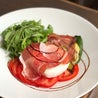Pomodoro, zucchine grigliate, tomino avvolto nel crudo e rucola, crema di aceto balsamico