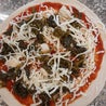 Mozzarella, salame piccante, friariello zola acciughe, olive nere?Pizza cascina?