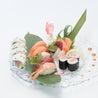 Uramaki salmone avocado con gamberi granchio tritato e maionese esterno