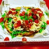 Straccetti di pizza fritti e conditi con pomodorini datterini, rucola e scaglie di parmigianoMontanara formato pizza