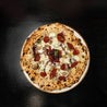 Fior di latte, wurstel di puro suino, patate fresche fritte, basilico e olio evo del Vesuvio.Capricciosa