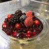 Biscotto ai cereali e olio evo, mousse al formaggio fresco, salsa ai frutti di bosco
