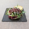 Deliziosa porchetta artigianale FR, con demi glace al vino rosso, cipolla rossa crudi di Tropea IGP e peperoni.Vardèn