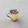 Cremoso tiramisù al caffè, con golosa crema al mascarpone, servito con guarnizione di scaglie di cioccolato.