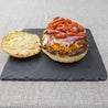 Cotoletta vegetariana, salsa bbq al miele fr, burro d’arachidi fr, glassa di aceto balsamico, pomodoro, peperoni, radicchio, pecorinoMenù Specièl - panino piccante