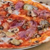 Pomodoro, mozzarella, prosciutto crudo di Parma DOP - 20 mesi, pomodorini datterini, funghi champignon freschi, scaglie di parmigiano reggiano DOP - 24 mesi