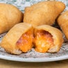 Bocconcino di pasta pizza fritta farcito all'interno con scamorza affumicata BIO, prosciutto cotto, pomodoro, parmigiano reggiano DOP 24 mesi