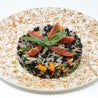 Salsa di pomodorini confit, pomodoro pelato bio schiacciato a mano - fuori forno: valerianella, rucola, misticanza, pomodorini datterino, pane tostato al basilico, olio evo e limone, peperoni cruschiDeliziosa