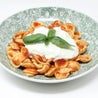Troccoli bio con salsa di pomodoro, acciughe, pane tostato al basilico, peperoni cruschiI secondi