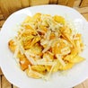 Con pomodoro, mozzarella filante e patate stick