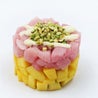 Tartare di Ricciola marinata con il limone, letto di mango e granella di pistacchi