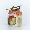 Tre strati di Gusto, Salmone, Ricciola e Tonno! All'interno Mayo Wasabi e Yuzu Mayo.