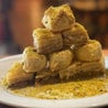 Torta pasticcera con Ashta (crema orientale), aromatizzata con acqua di fiore d'arancio, guarnita con pistacchio tritatoBevande