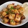 Cubetti di patate saltate con peperoni rossi, aglio, coriandolo e peperoncino verde. Leggermente piccanti.