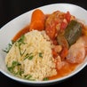 Vegetali misti di stagione al sugo, bolliti in salsa tradizionale marocchina e serviti con couscous