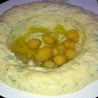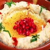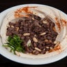 Purè di ceci miscelato con salsa di sesamo e limone, ricoperto di carne e pinoli tostati