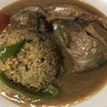 Spiedini di carne macinata e speziata, serviti su un letto di salsa piccante al pomodoro (ratatouille) con riso