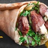 Kebab di carne, straccetti di manzo marinato ed arrostito allo spiedone con crema di sesamoFalafel