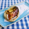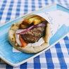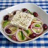 Pita con formaggio Halloumi (formaggio vaccino, caprino e ovino dì origine cipriota), pomodori, cetrioli, peperoni, cipolle e patatine