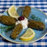 Foglie di vite ripiene di carne e riso con yougurt bianco