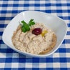 Purè di cicerchia accompagnata con cipolle rosseFeta Tiganiti