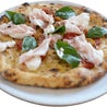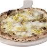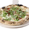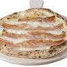 Fior di latte, crema ai formaggi, rucola, champignon. All'uscita: prosciutto crudo e burratina pugliese