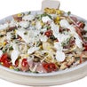 Crema di carciofi, salsiccia fresca, pomodorini, mozzarella, di bufala, rucola, scaglie di parmigiano
